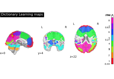 Regions extraction using dictionary learning and functional connectomes